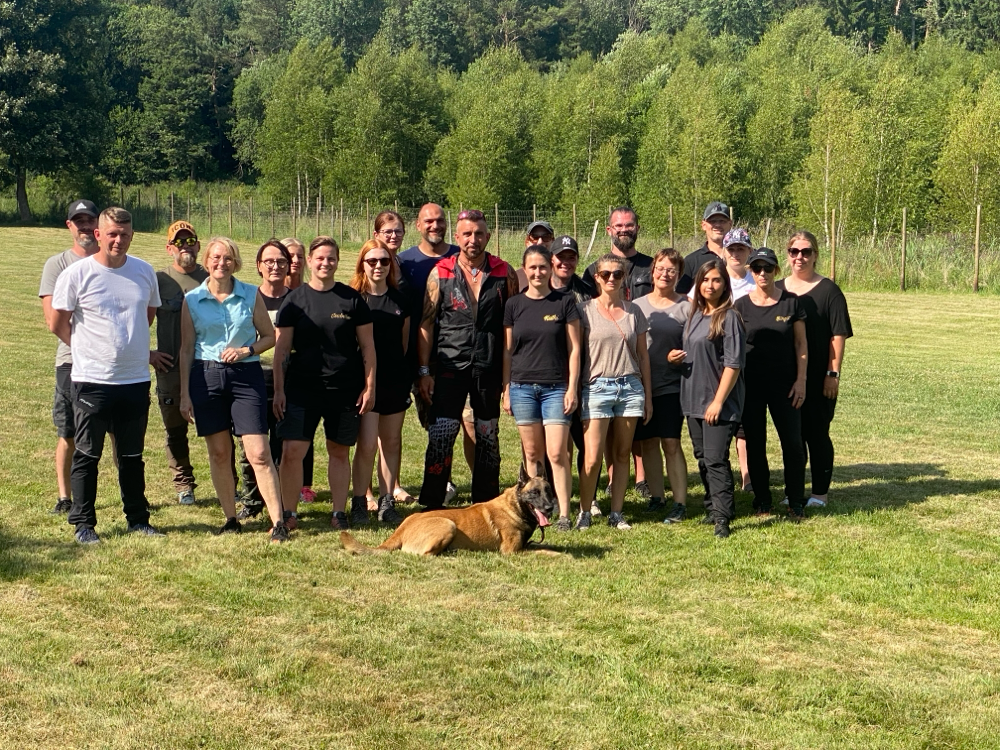 Bei sommerlichen Temperaturen starten wir um 8:00 Uhr mit dem Frühstück und die Teilnehmer lernen sich schon etwas kennen. Insgesamt nehmen 22 Hundesportler an unserem Workshop Teil, davon stammen 8 aus unserer eigenen Ortsgruppe.