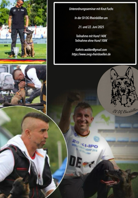 Um 9:30Uhr geht es mit Knut auf den Platz und er erläutert uns zunächst theoretisch seine Ausbildungs-Philosophie wobei er von seinem Rüden Axel für die praktischen Vorführungen tatkräftig unterstützt wird. Schon hier wird den Teilnehmern deutlich wie intensive Knuts Bindung und sein Verständnis für die Hunde ist.
